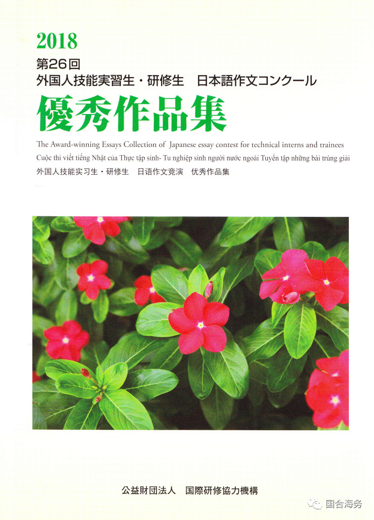 “外国人技能实习生・研修生日语作文大赛”,由日本财团法人国际研修协力机构(JITCO)主办,每年一届。是在日外国人实习生界级别最高,最具权威性和影响力的国家级作文赛事。旨在增进国际友好交流、提高外国人实习生技能水平。今年是第26届,有来自日本各界的2151名实习生参加了比赛,经过三阶段的严格审查,共评出获奖作品50篇。